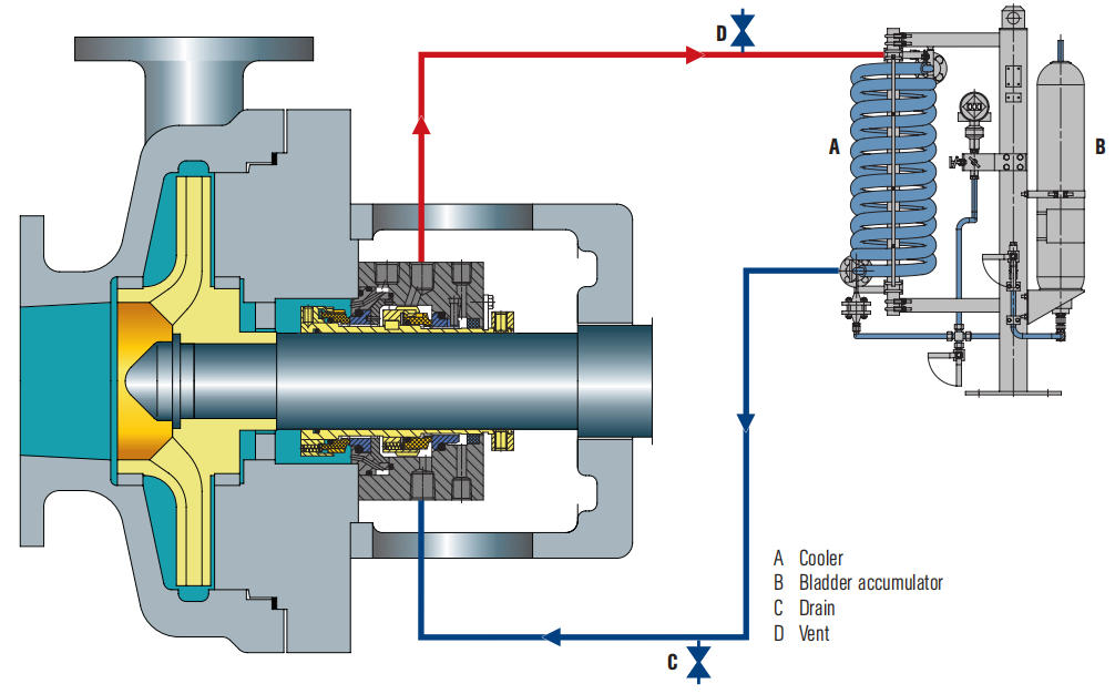 Дебитът на промивната течност трябва да е достатъчен, за да отведе топлината от камерата на механичното уплътнение.